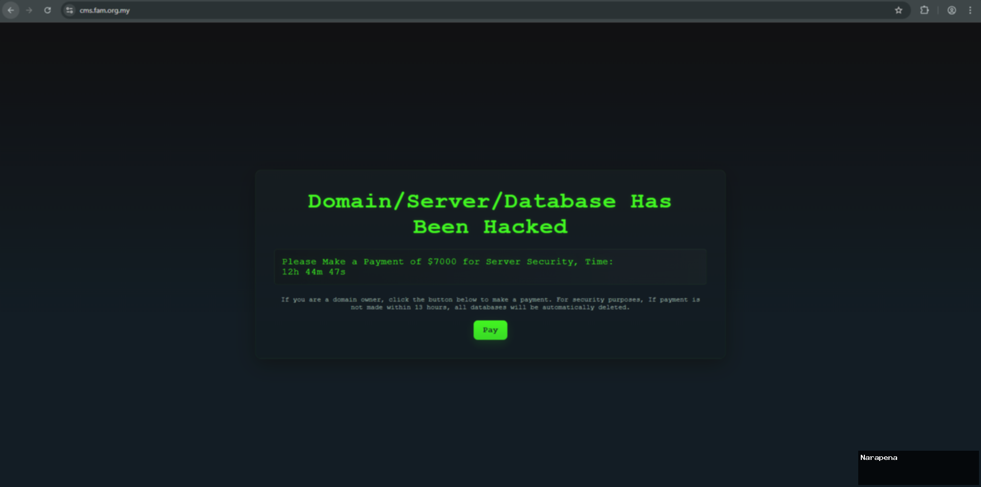 “Tolong lakukan pembayaran senilai 7000 dollar AS untuk keamanan server,” demikian keterangan di laman tersebut.